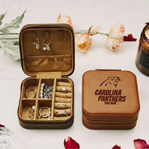 Keep your precious jewelry safe and organized with our personalized Carolina Panthers jewelry boxes. These travel cases are the perfect size to store your favorite pieces, whether you’re on the go or just need a place to keep them tidy at home. The Carolina Panthers Emblem on the box makes it a perfect item for any Carolina Panthers Lovers!