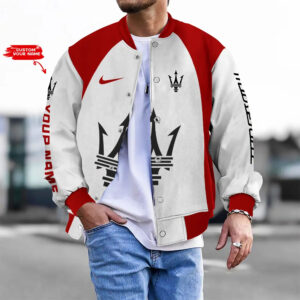 Customize Your Name With Maserati Button Down Baseball Varsity Bomber Jacket