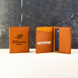 Elevate your travel experience with our Personalized Miami Dolphins Leather Passport Holder. This passport holder not only adds a touch of elegance to your travels but also offers a secure and stylish way to safeguard your essential documents. The Miami Dolphins Emblem on the cover makes it a perfect item for any Miami Dolphins Lovers!